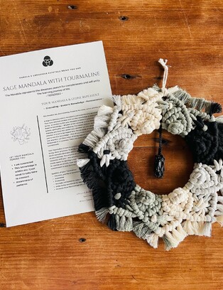 Bringing together the energy of crystals and mandalas, these pieces are created in collaboration with my cousin, Millisa at Conscious Crystals. Each mandala is created with powerful, beautiful intentions woven within them, which align with the energy of the crystal.