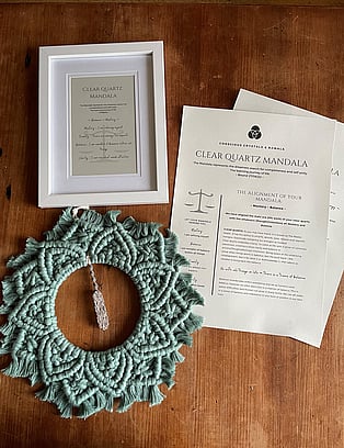 Each mandala also comes with an alignment sheet outlining its intention and energies, and framed affirmations.